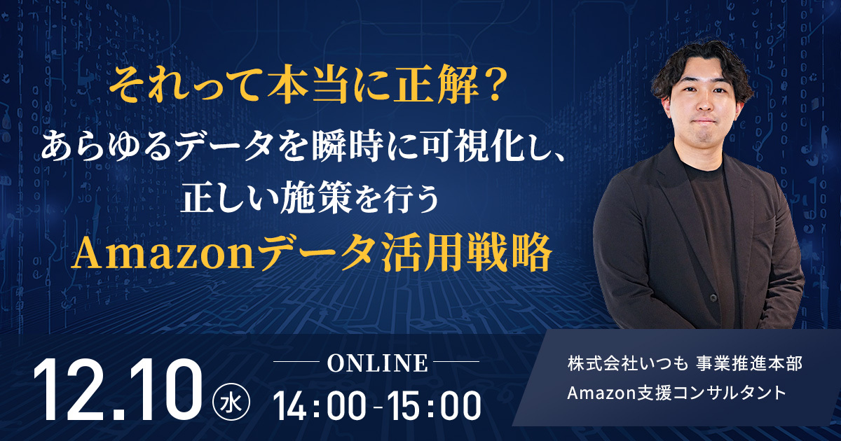 本セミナーでは、なぜそのデータを把握する必要があるのかご説明した上で、どのように考え打ち手に転換できるか、Amazon成長において「あるべき姿」や「考え方」を解説いたします。